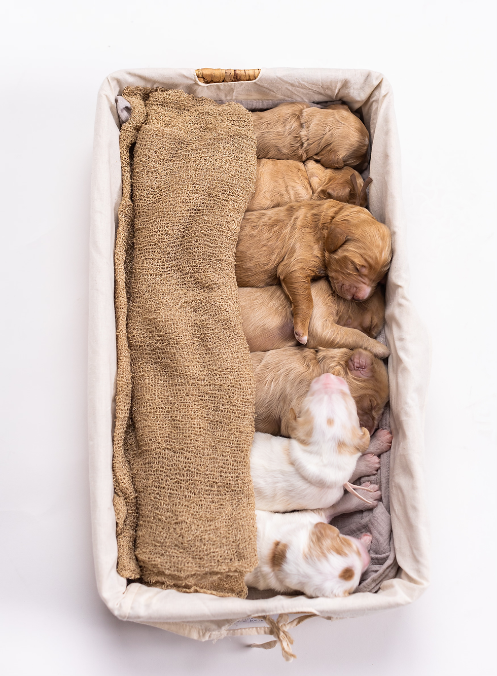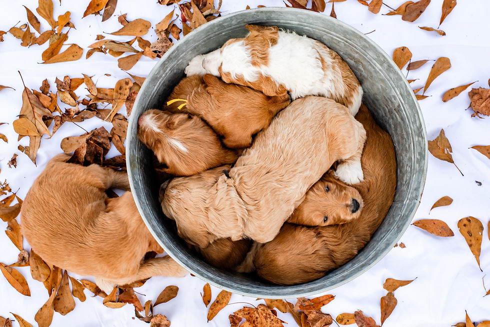 Vespa's very first litter was born on February 20th, 2023. This was a dual sired litter with Vino and Theo. We called them our “A Stitch in the Fabric” litter, with names woven from textures and textiles. Suede - kept his name, Denim - now Sadie, Velvet - now Molly, Lace - now Chantilly Lace, Linen - Lucy, Cotton - now Colton, and Corduroy - now Murphy. This is litter that started it all. I am forever grateful for what these precious babies taught me.